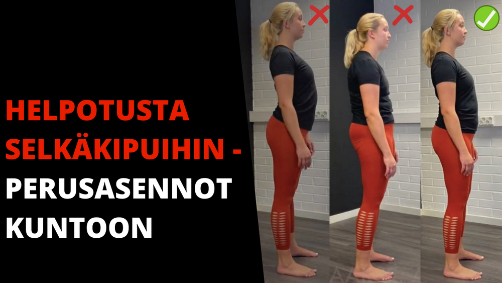 Jos tekee selän kuntoa parantavia harjoitteita ja viettää paljon aikaa epäedullisissa perusasennoissa, ei tuloksia synny ja selkä pysyy kipeänä. Suvi näyttää esimerkit sekä epäedullisista asennoista että kuinka niitä voidaan korjata.