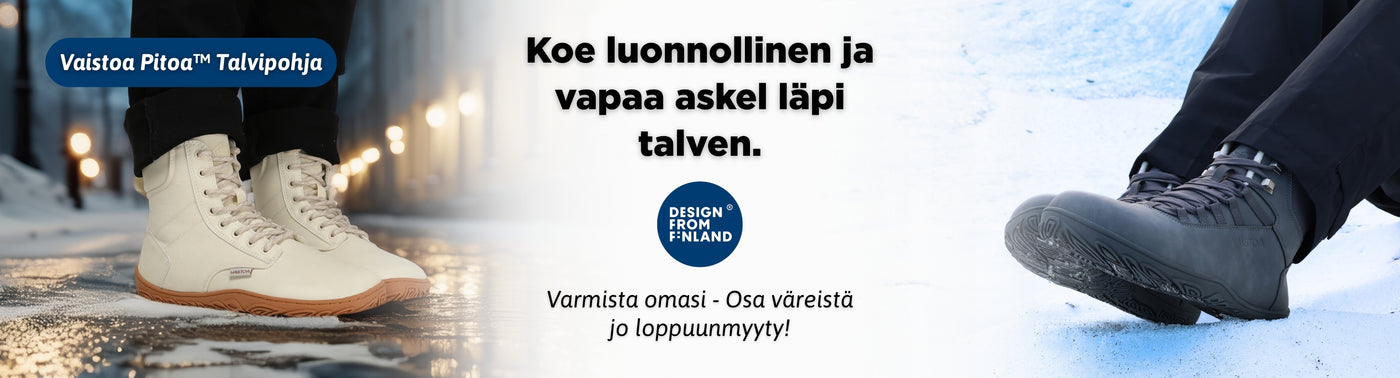 Valmistaudu talven haasteisiin paljasjalkakengillä, jotka tarjoavat jalkaterveyttä tukevan, mukavan ja vapaan liikkumisen jokaisella askeleella!