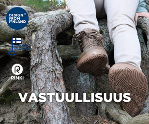 Tulevaisuudessa pyrimme nostamaan kierrätysmateriaalien määrän kengissämme mahdollisimman suureksi. Lisäksi olemme jo kehittämässä kenkiä, joissa käytettyjen luonnonkuitujen tuotanto olisi mahdollisimman vähän ympäristöä ja luontoa kuluttavaa. Kaikissa valinnoissamme pyrimme siihen, että paljasjalkakenkien ominaisuudet ja ympäristön kantokyky otetaan huomioon.